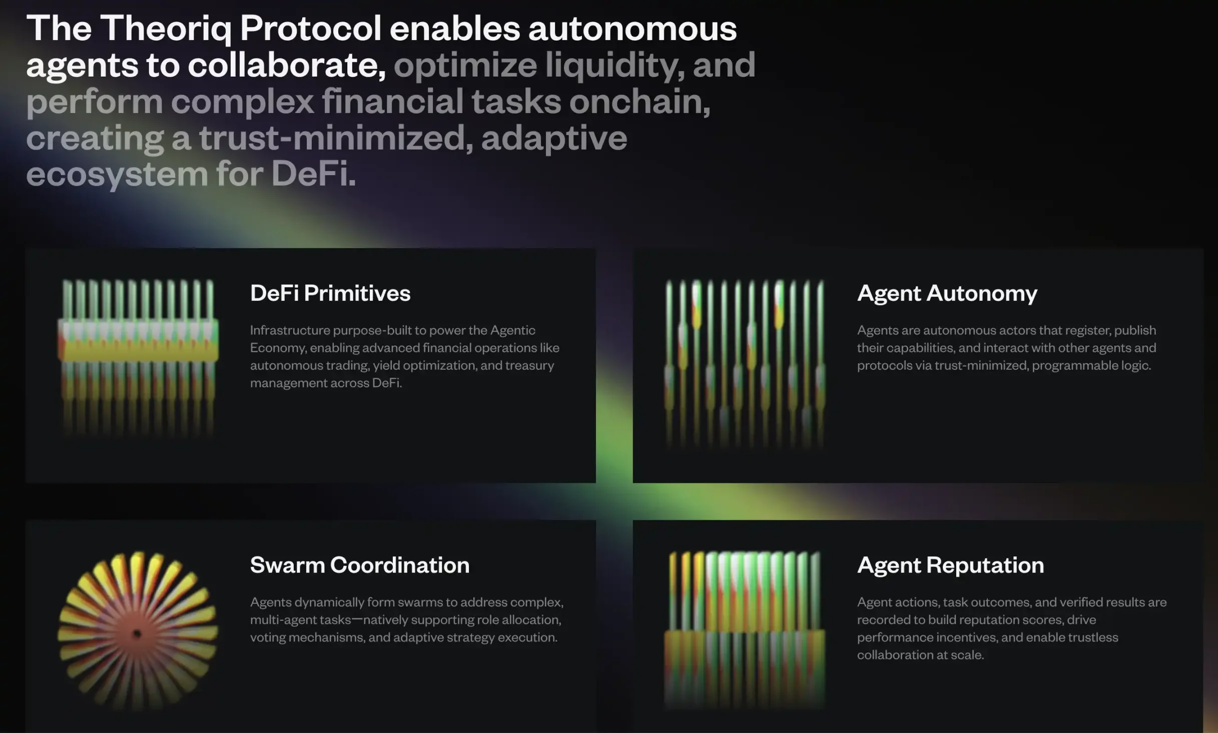 Theoriq 是一种模块化、可组合的 AI 代理基础层,功能据称也十分强大,包括机器学习、多 Agent 蜂巢合作、以及 DeFAI 的概念。所包含了当前几乎所有火热的概念,不管是哪一种已经有太多「前辈」,前仆后继的想要完成,不免让人心生「它跟其他 AI 有什么区别」的想法。