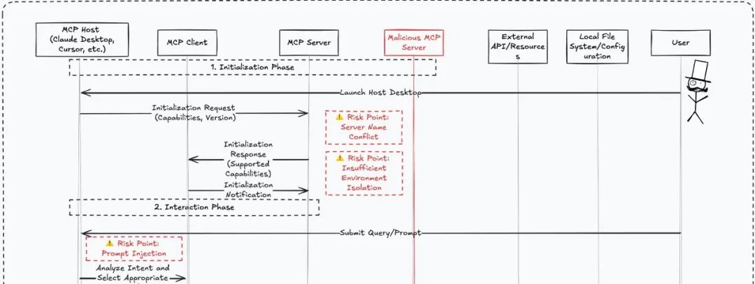 通过这次 MasterMCP 的实战演示,我们直观地看到了 Model Context Protocol (MCP) 体系中隐藏的各种安全隐患。从简单的提示词注入、跨 MCP 调用,到更加隐蔽的初始化阶段攻击和恶意指令隐藏,每一个环节都在提醒我们:MCP 生态虽然强大,但同样脆弱。