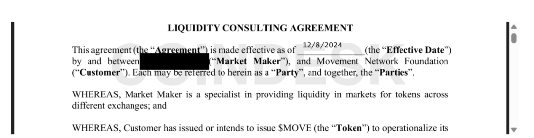 2025 年 12 月 8 日,Movement Foundation 与 Rentech 正式签署了修订版做市协议。尽管协议中 Rentech 被明确标注为 “Web3Port”(名称在部分文件中已打码处理),实质上其作为借款方的身份未变,而基金会依旧为出借方。