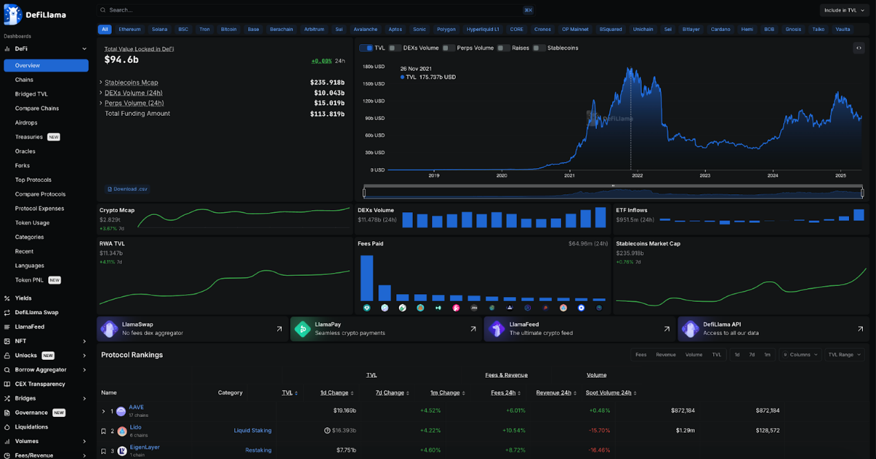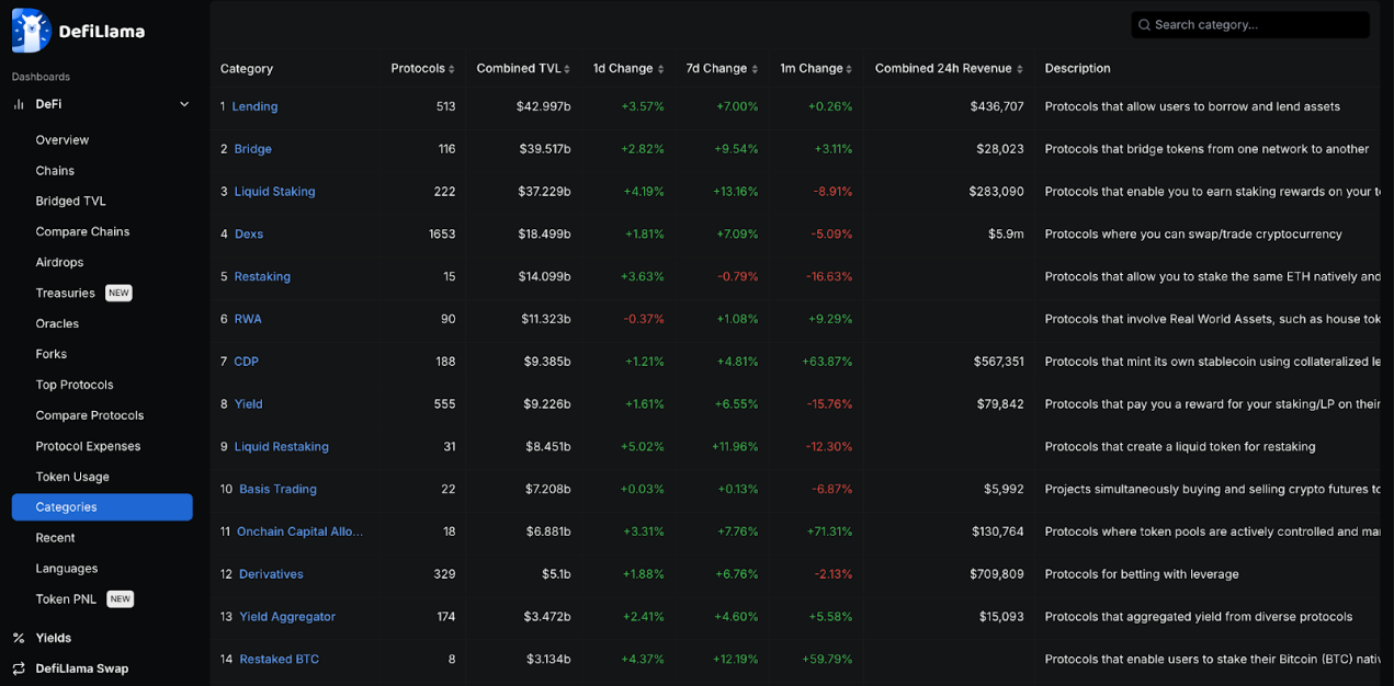 DeFiLlama 中的数据非常丰富,甚至让人无从下手。下面进一步探讨其中的一些类别,并分析其中要点。