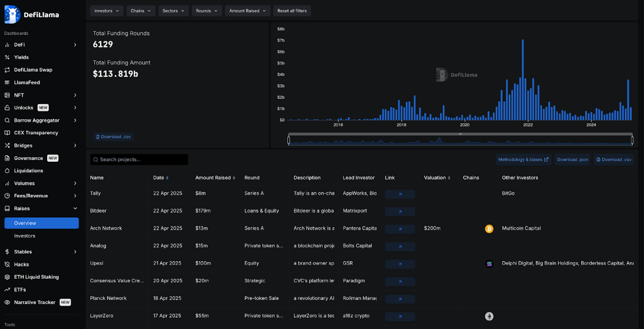 DeFi 领域已筹集超 1130 亿美元的融资,总融资轮次达 6129 轮。融资额在 2021 年末至 2022 年初达到最高,但目前增长迅速,仅上个月就已超 35 亿美元。