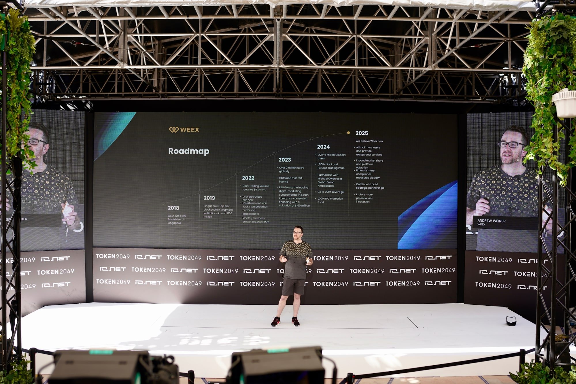 WEEX 副总裁 Andrew Weiner 也受邀参与了 TOKEN2049 题为《从 5 亿到 50 亿:是什麽让 WEEX 与眾不同》的主舞台演讲。他表示:「此次亮相 TOKEN2049,不仅是为了展示平台实力,也标誌著 WEEX 全球策略加速实施的阶段。我们将在全球范围继续加速扩展,并透过创新服务与合规推进,打造更具韧性与在地化能力的全球平台。」