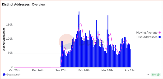 - 活跃钱包数:在二月达到每日逾15万的峰值,随后逐渐趋稳,维持在5万至10万区间