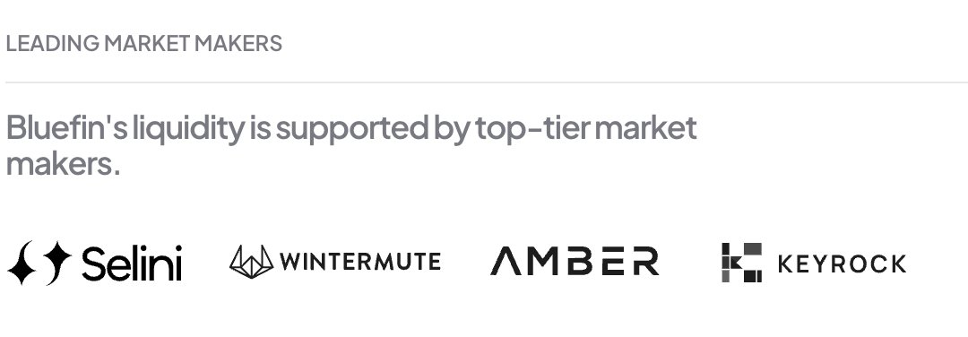 Bluefin 作为 Sui 上的老牌 Perp DEX,结合了快速匹配的链下订单簿和安全的链上结算引擎。协议流动性由专业的做市商 (MM) 管理: