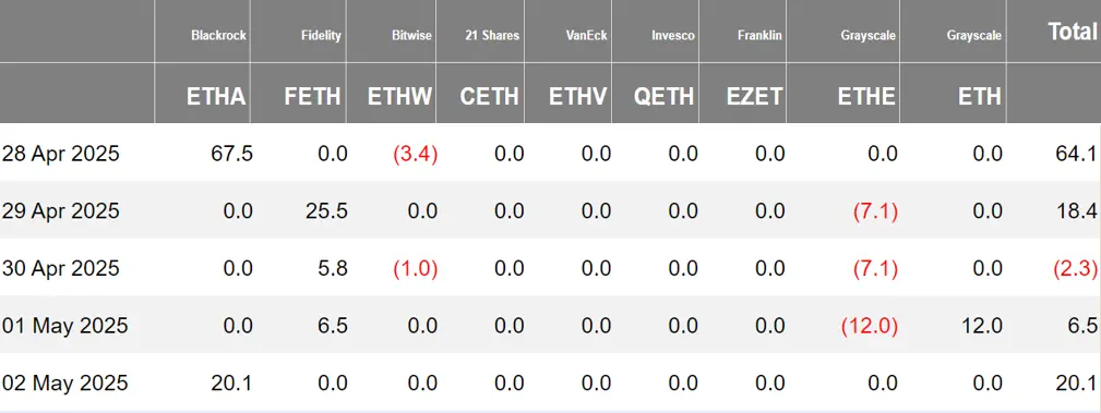 上周流入主要来自贝莱德 ETHA,净流入 8760 万美元。共 4 只以太坊现货 ETF 未有资金流动。