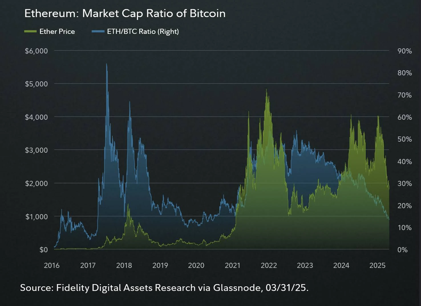 来自 Fidelity 数位资产的新资料暗示对以太坊持谨慎乐观态度,表明其在第一季度的糟糕表现可能是一个机会。根据他们最新的《 Signals Report 》,以太币(ETH)在第一季度下跌了 45% ,抹去了其在美国大选后达到的收益,此前在 1 月份达到 3579 美元的峰值。