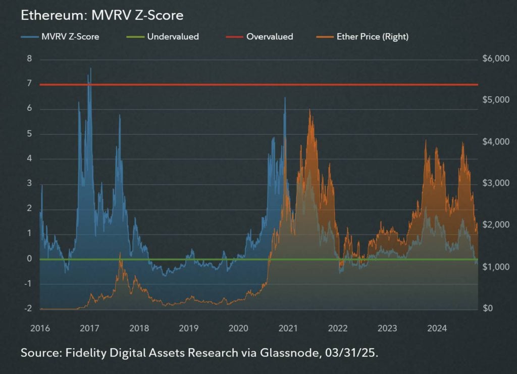 - Fidelity 数位资产的报告指出,多个以太坊链上指标表明 ETH 的交易价格低于估值。