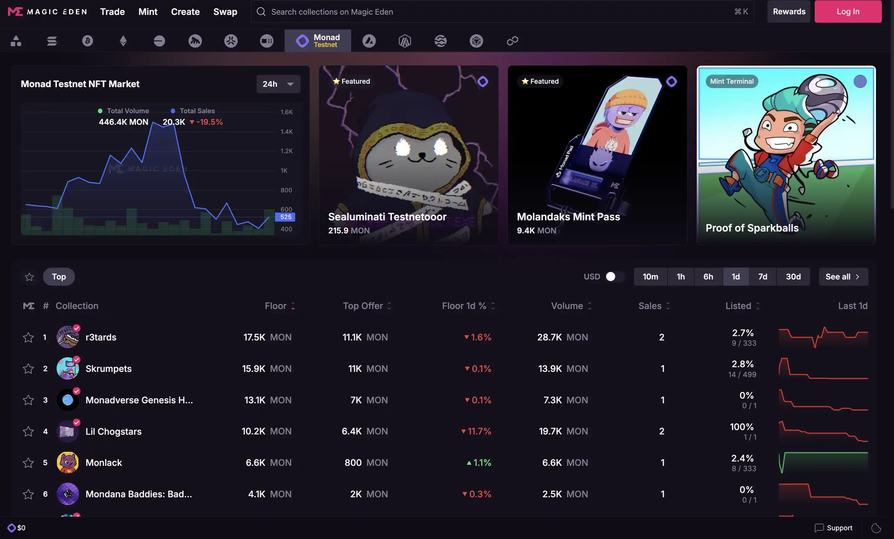 最典型的例子是 Monad,尽管主网还没有上线,但是测试网上已经有了大量的 NFT 资产,这些资产在 Magic Eden 上被极为广泛地交易,看上去和真实的主网资产已经没有什么分别。