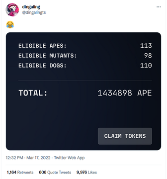 他被认为是最成功的“NFT 投资者”之一,早年持有 113 个 Bored Ape Yacht Club(BAYC)、 70+ Azuki NFT,累计获得了 140 万个 Ape 空投,时价超千万美元。
