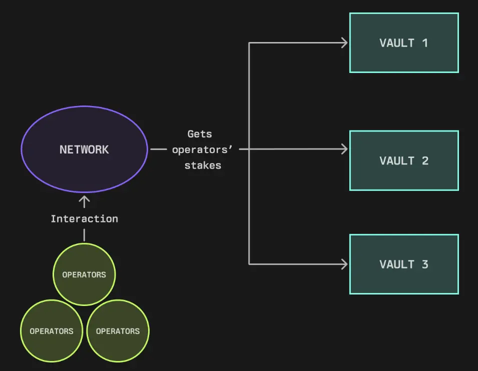 网络同时使用多个保险库,从而能够聚合来自不同来源的安全性。这种灵活的架构使得运营商可以在不同的保险库中累积质押,同时网络可以通过结合来自不同保险库来源的委托来计算其总质押量。