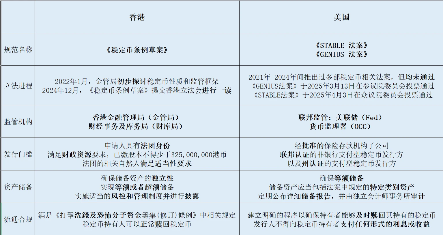 (上图为美国和香港稳定币监管框架的对比总结表)