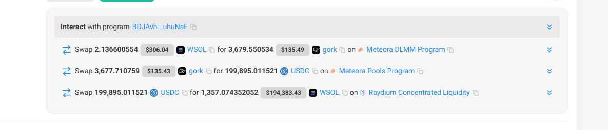回顾原子套利的整体逻辑不难发现,要实现盈利最重要的点在于发现套利机会。以获利最高的一笔套利为例,这笔交易最初用2.13 SOL购入了3679枚grok代币(单价约为0.08美元),然后以19.9万美元的价格出售(单价约为54.36美元)。很明显,这次套利成功也是抓住了某个交易池流动性稀少的漏洞,由某个未注意池子深度的大户买单。