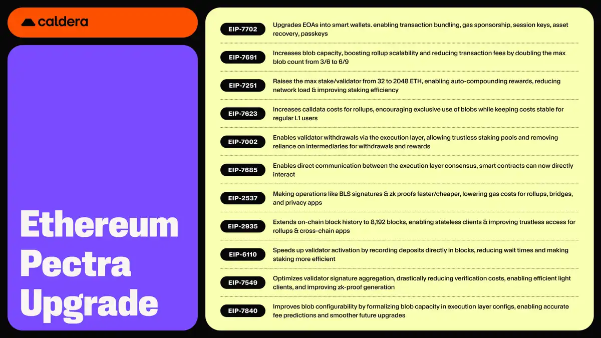 影响:提升了开发者体验和生态系统的可扩展性,帮助以太坊更高效地增长。PECTRA 是一次重大的升级。它带来了重要的技术进展,使以太坊变得更加可扩展、成本高效且用户友好。