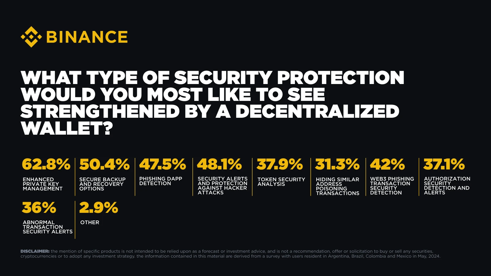 ● 62.8% 的受访者将加强私钥保护列为他们最期待的钱包功能——突显用户对直观且安全的自我托管工具的强烈需求。