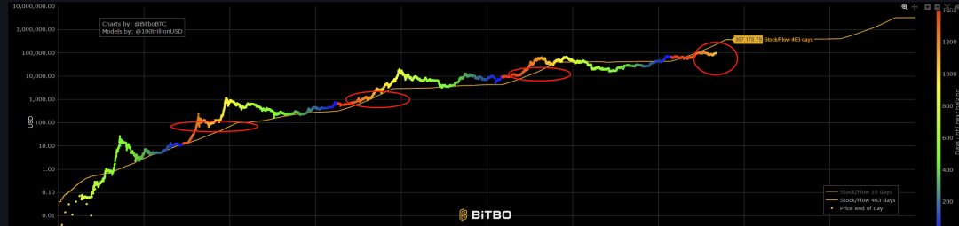 Fig.4 Bitcoin 价格 Stock-to-flow 图表