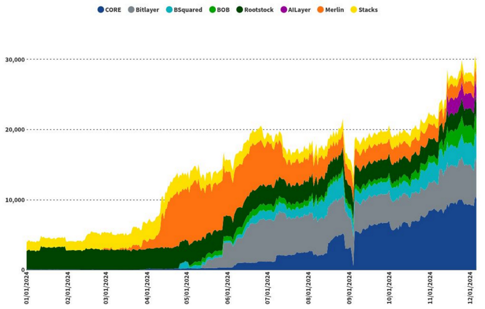 仅在 2024 年,比特币生态系统的增长就高达 600%,总锁仓 BTC 数量突破 30,000 枚,相当于近 30 亿美元的资产被积极用于各类扩容解决方案。信息非常明确——比特币正在演化。它已不再只是一个价值存储手段,而是逐渐成为链上经济不可或缺的一部分。