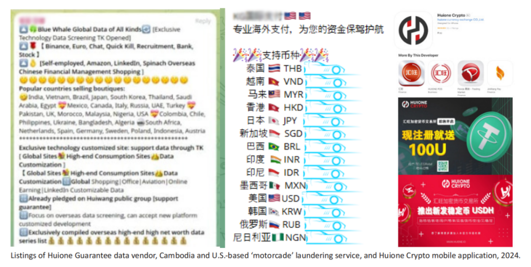 Huione 还推出了一系列自有的加密货币相关产品,包括加密货币交易所、加密集成的在线赌博平台、Xone Chain 区块链网络,以及其自主发行的美元支持型稳定币。该稳定币声称“不受传统监管机构的限制”,旨在“避免传统数字货币常见的冻结和转账限制”。2025 年 2 月,该集团宣布推出 Huione Visa 卡,并透露正在大举投资其他大型非法在线市场、社交媒体和消息平台,以及专业洗钱服务,其中包括于 2024 年 12 月收购 Tudao Guarantee 30% 的股份。这一系列动作凸显出 Huione 可能正在为未来被主流平台限制使用做对冲准备。