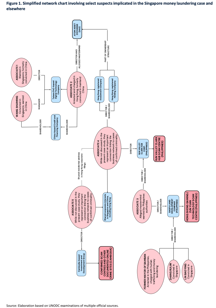 在东南亚地区,一些跨国犯罪集团利用复杂的商业结构掩盖非法活动,特别是在洗钱和网络诈骗领域。例如,新加坡2023 年爆出的数十亿美元洗钱案揭示了一个庞大、跨境、依赖多重国籍和加密资产运作的有组织犯罪网络。该案中的嫌疑人虽多数出生于中国,但通过柬埔寨、塞浦路斯、土耳其等国的投资入籍计划获取多国护照,并在东南亚及海外广泛设立公司、银行账户和高价值不动产,以掩盖电信诈骗、非法网络赌博等非法收益。通过链上交易、稳定币支付及离岸账户的灵活组合,该犯罪网络得以在不同监管体系之间“跳岛式”转移资金,极大增加了跨国金融监管与刑侦溯源的难度。