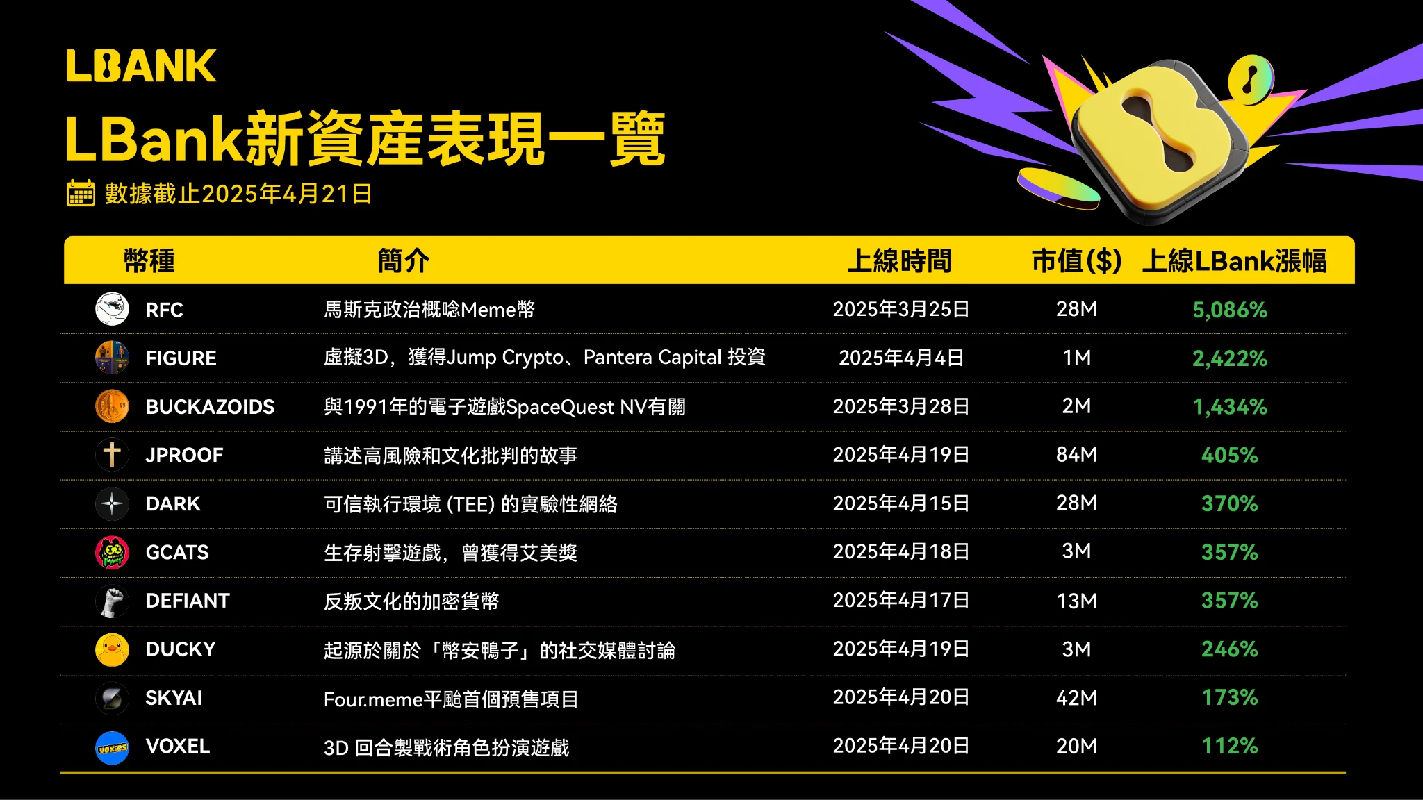 回望 4 月,Meme 与AI 叙事在比特币企稳、名人效应与流动性竞争的共振下点燃市场,LBank 的“快速上币”节奏与 BNB 链的 Alpha 加速器则让资金博弈推向高潮。展望 5 月,宏观利好、以太坊升级、 AI Meme 和 RWA 叙事仍在延伸。真正决定收益的,既是踩中浪头的速度,也是对回撤的敬畏。保持好奇、坚持研究、控制仓位,或许才是下一轮行情到来前最值得坚守的策略。