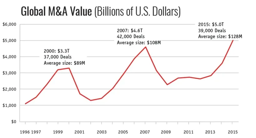 在《并购失败陷阱》一书中,Baruch Lev 和 Feng Gu 研究了全球 40000 起并购案例,得出结论称 70% -75% 的并购以失败告终。 他们将失败归因于诸如目标公司规模过大、目标估值过高、与核心业务无关的收购、目标公司运营薄弱以及高管激励措施不一致等因素。