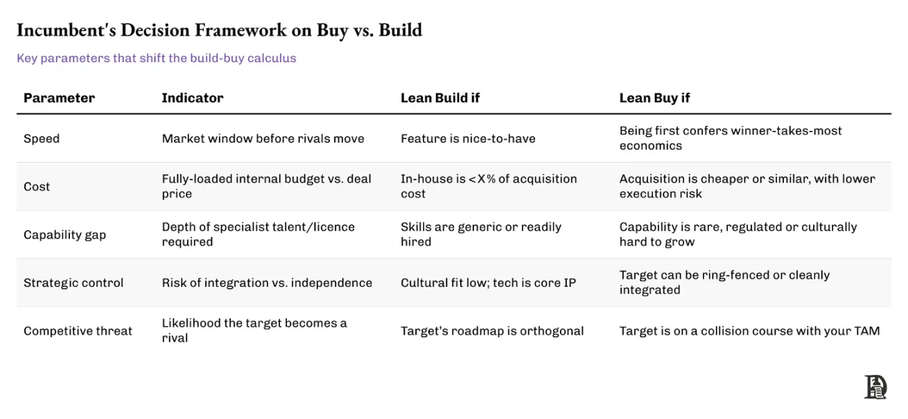 下面的表格可以帮助你了解现有企业在考虑自建还是收购时的想法。