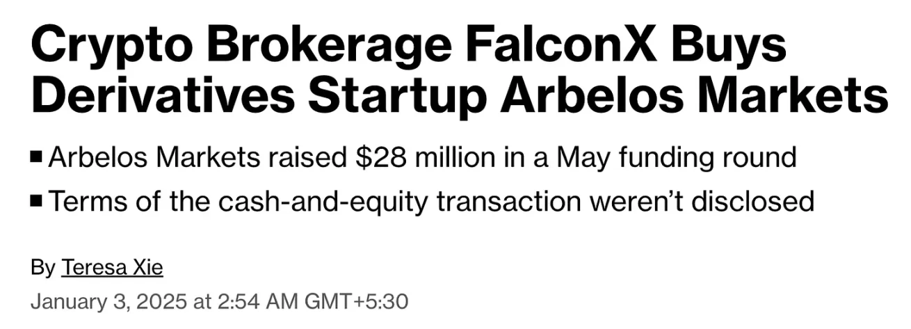 另一个例子是 FalconX 在 2025 年 4 月收购 Arbelos Markets。Arbelos 是一家专业的交易公司,以其在结构化衍生品和风险仓储方面的专业知识而闻名。这些能力对于服务机构客户至关重要。FalconX 作为机构加密货币资金的主要经纪商,了解通过 Arbelos 的衍生品交易量情况。这可能使它坚信 Arbelos 是一个具有高价值的收购目标。