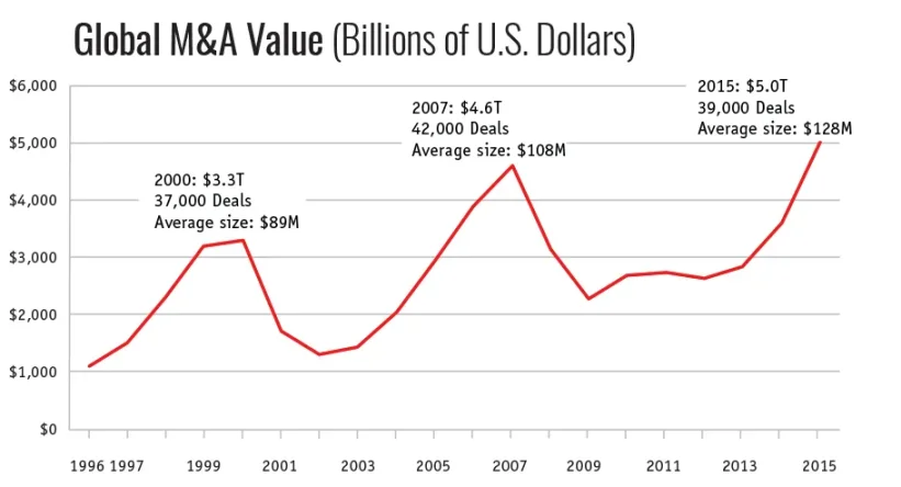 在《并购失败陷阱》一书中,Baruch Lev 和 Feng Gu 研究了全球 40000 起并购案例,得出结论称 70%-75% 的并购以失败告终。他们将失败归因于诸如目标公司规模过大、目标估值过高、与核心业务无关的收购、目标公司运营薄弱以及高管激励措施不一致等因素。