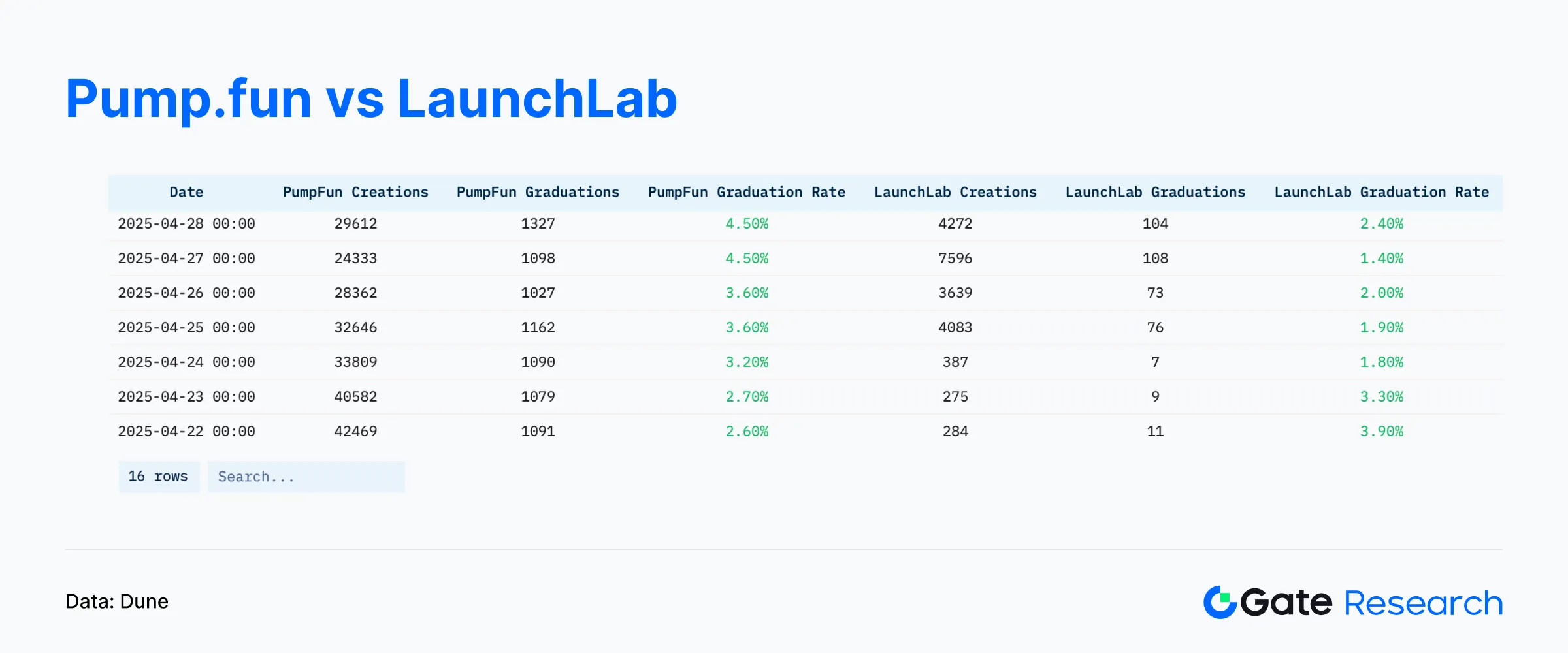 • 截至 4 月 28 日,LaunchLab 平台共创建 25, 207 个代币,毕业率约为 0.84% 。