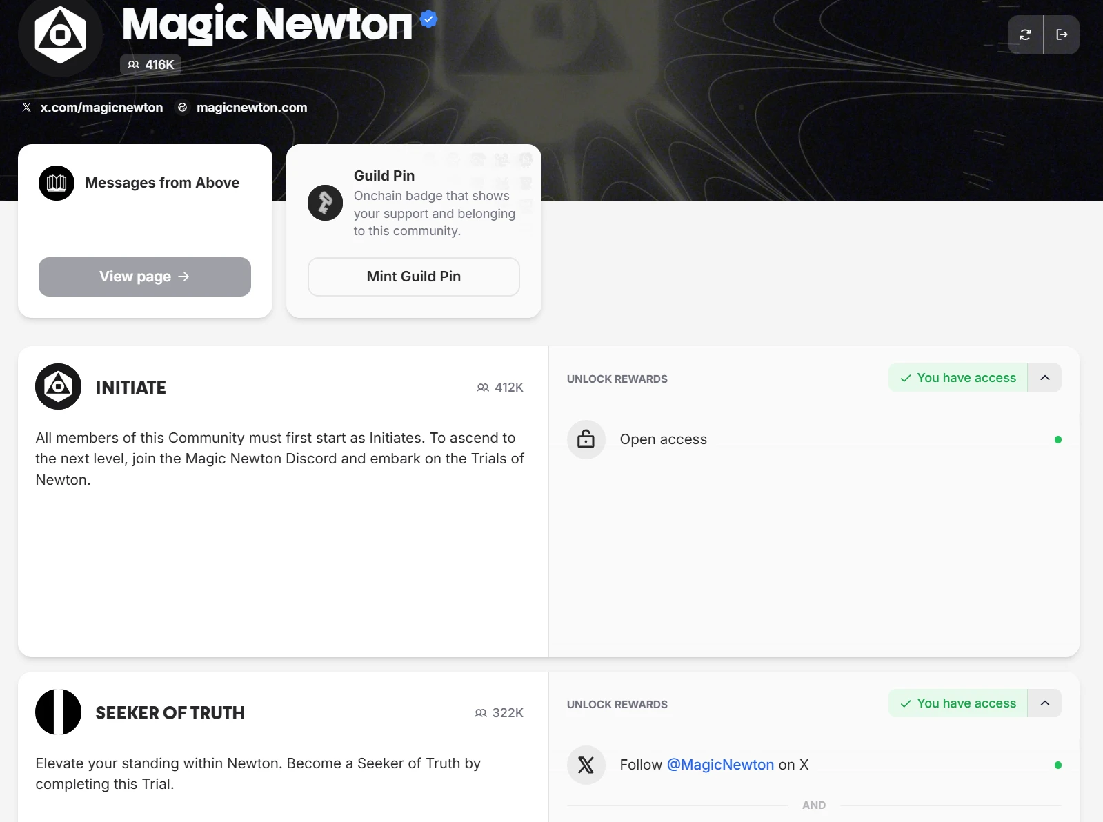 打开 Magic Newton 官网,注册账户,就能正式进入 Newton 的积分系统。系统任务包括: