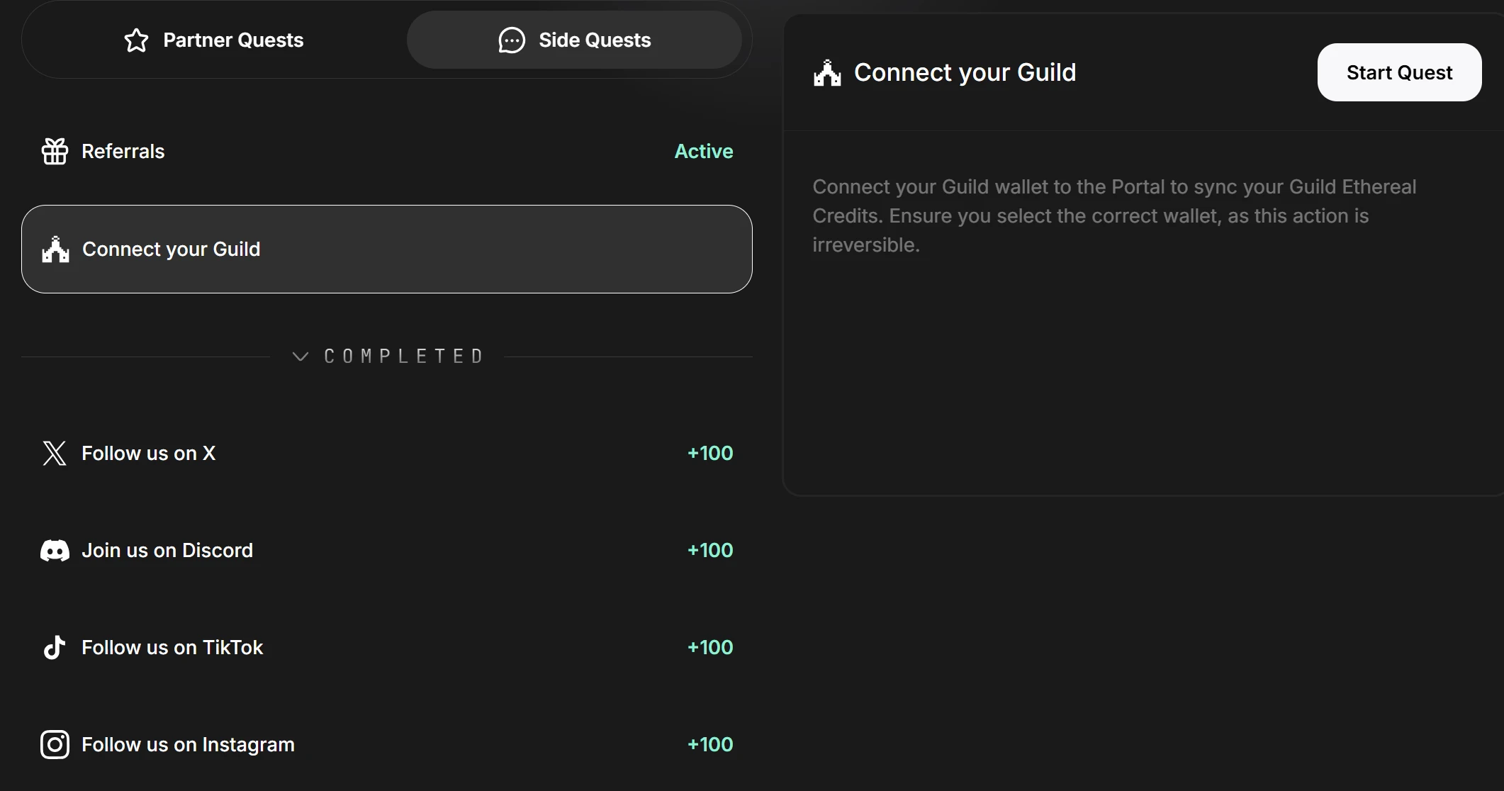 比较特别的一项任务是收集 Guild 角色(基于 Base 链,gas 费非常低),建议尽可能地完成现有任务。Seeker of Truth 收集 NFT 的任务现在已经结束了,可关注后续是否有其它新任务。