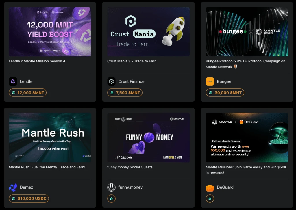 Mantle 生态发展还得益于多个黑客松(如 APAC Hackathon)、社区激励(Yapper 排行榜),以及与 Bybit 合作的跨链活动 Ecogalaxy: Mantle Surge 等。