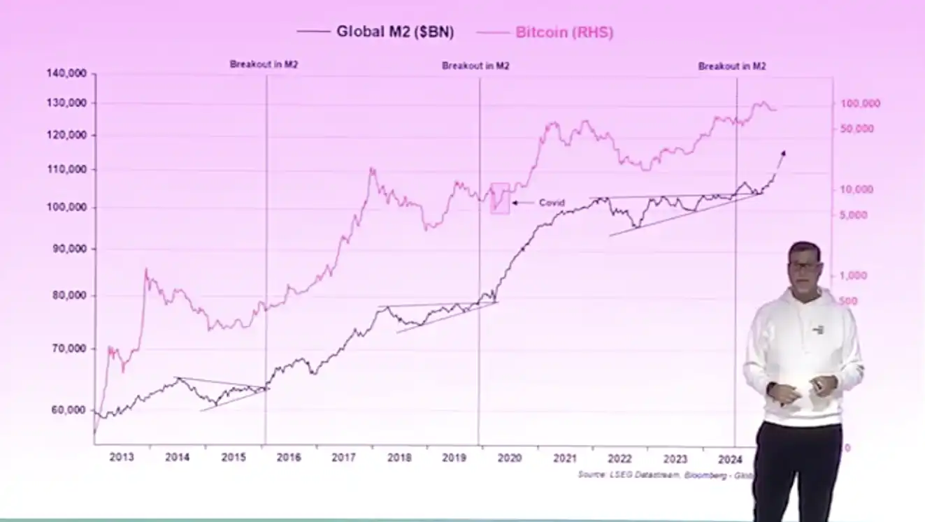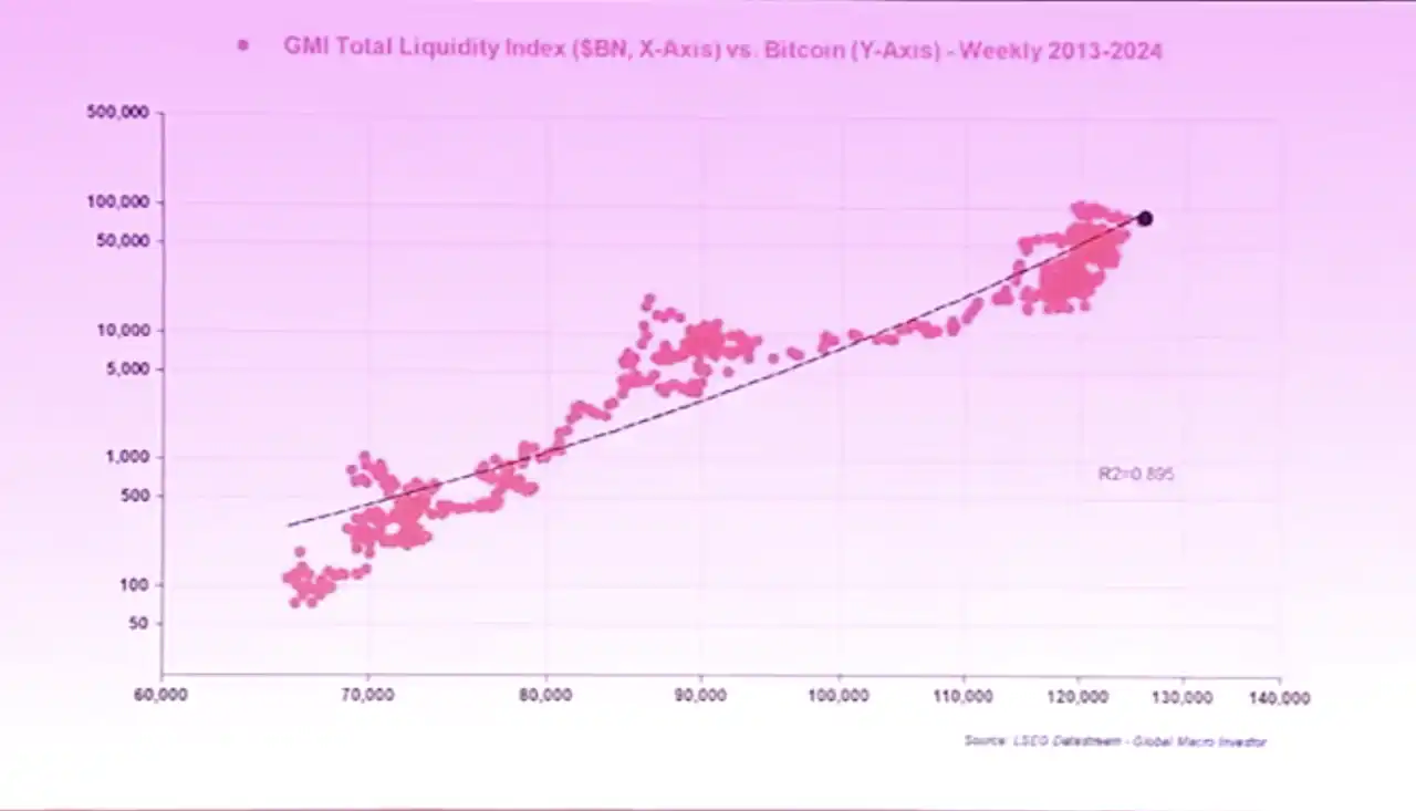 3、流动性驱动一切: 美联储净流动性是核心指标。2009 - 2014 年主要依靠资产负债表扩张来提供流动性,之后新增了如银行准备金调节等工具。当下,总流动性(包含 M2)至关重要,它与比特币(90% 相关性)和纳斯达克(97% 相关性)的走势具有惊人的解释力。