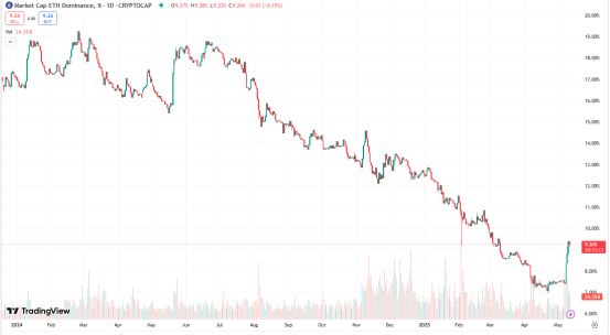 从基本面来看,以太坊在近日迎来了技术升级。5月7日18:05,以太坊成功完成Pectra 升级,这是继去年 3 月坎昆后主网的首次升级。实际上,相比其他轮次中机制的改变或是核心基础设施升级,Pectra聚焦于应用层面,在规模基础上并不占优,而升级的时间点,正值于价格低迷时期,叠加而来的影响是,本次升级远未如坎昆等升级受到市场关注,市场热度有限。