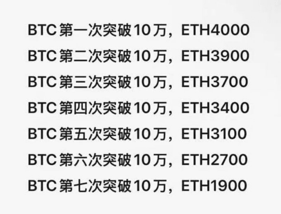 市场上谈论以太坊的人,突然变得多了起来,很明显的是在社交平台上,再度出现以太坊崛起的口号和此起彼伏的ETH价格晒图。而就在不久之前,这一曾经的山寨龙头,一度被众人有意无意地投以漠视的目光。归根结底,在本轮牛市中,ETH的表现实属让人难以满意,有心人士甚至做表对BTC从第一次到第七次突破10万美元时的ETH价格情况进行了对比,结果是ETH一路走低,甚至离1300美元仅有一步之遥,ETH/BTC更是接连创下5年新低,山寨季何时到来,还能不能来,成为了市场上的无解难题。