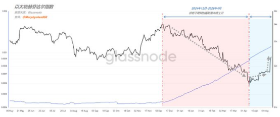 轮动也好,换庄也罢,从目前来看,反弹的核心驱动还是在以太坊价格修正上。在此前连绵不断的FUD中,ETH的价格走得太低,与BTC的汇率来到了历史最低部,难以匹配其加密蓝筹股的身份,也与市场认知脱节,在多重利好叠加下,信心回升,估值修复与价格修正更符合现实性。习惯性做空也让本次上涨再现轧空操作,随着价格的上涨,数据显示,自5月8日起,以太坊期货市场的空头头寸出现大规模平仓,仓位回补也助推了上升螺旋的启动。