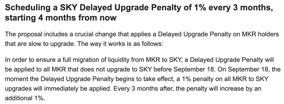 在同一更新中,还提到将进行从MKR到SKY的强制迁移: