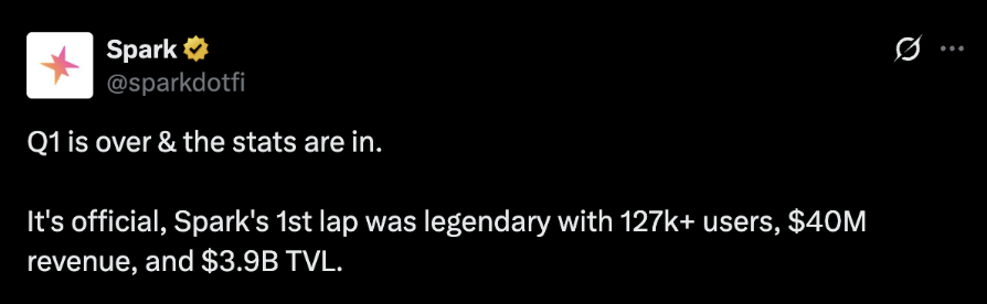 Spark是一个结合借贷市场与链上资产管理的项目,在几乎没有激励措施的情况下,2023年第一季度就实现了4000万美元的收入。他们能够以补贴利率为SKY借入稳定币,从而在链上分配资本。