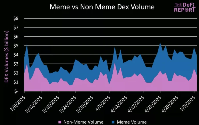 但目前 Base 上大约 50% 的 DEX 交易量来自 Meme,其中绝大多数都是新流行的 Meme。