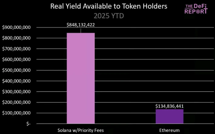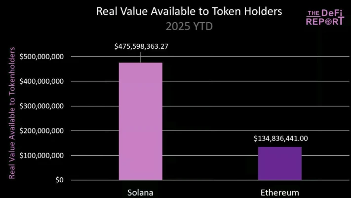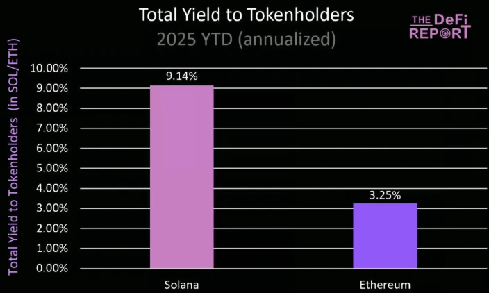The DeFi Report 的研究人员认为从基本面来看,即使超越不了,SOL 的价格也绝对不应该低于 ETH 90% 以上, 过去的分析中主要以费用、DEX 交易量、稳定币供应量及交易量、总 TVL 等指标来比较这两个网络。 The DeFi Report 本期的报告 重点转向比较 ETH 和 SOL 代币持有者可获得的实际价值上,统计发现 SOL 代币持有者获得的实际价值是 ETH 的 3.6 倍,因此认为市场目前对 ETH 的估值已经高于 SOL。 Odaily星球日报将全文编译如下,enjoy~