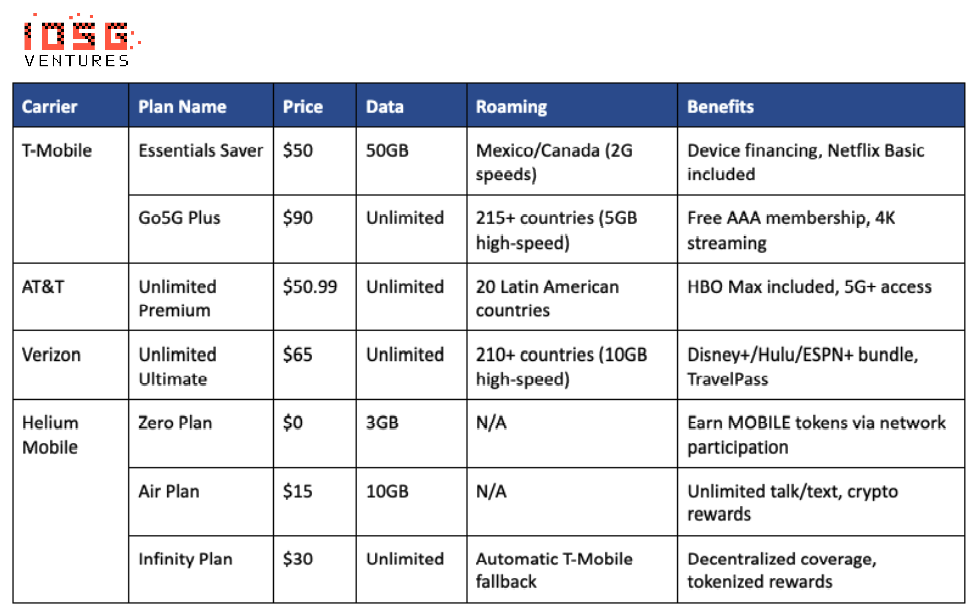而 Helium Mobile 通过社区众包的方式,将这个早期成本分摊至每个用户,个人仅需购买 249 美元或 499 美元的热点设备即可接入网络,成为「微运营商」,通过代币激励驱动社区自发组网,从而降低总体投入。Verizon 部署一个宏基站的成本约为 20 万美元,而 Helium 通过部署约 100 个热点设备(总成本约 5 万美元)即可实现近似的覆盖范围,成本降低幅度约为 75%。