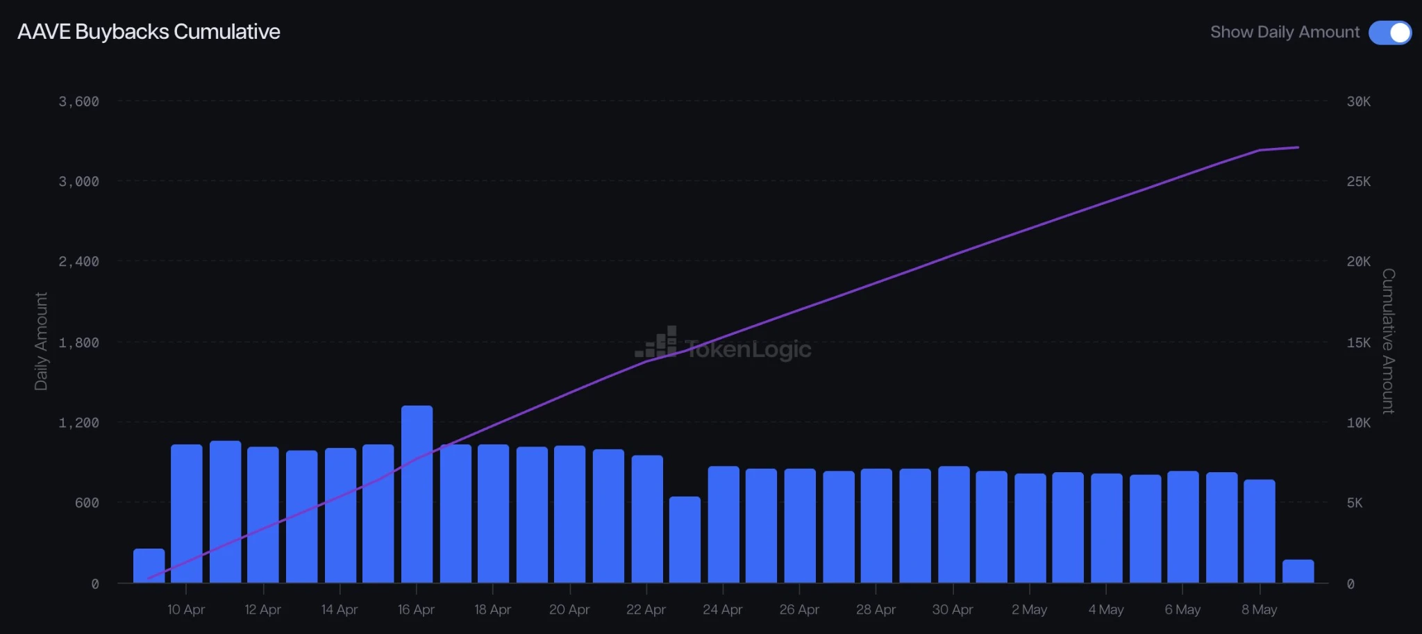 过去 30 天,AAVE 累计回购超过 400 万美元的$AAVE。看板: https://aave.tokenlogic.xyz/buybacks