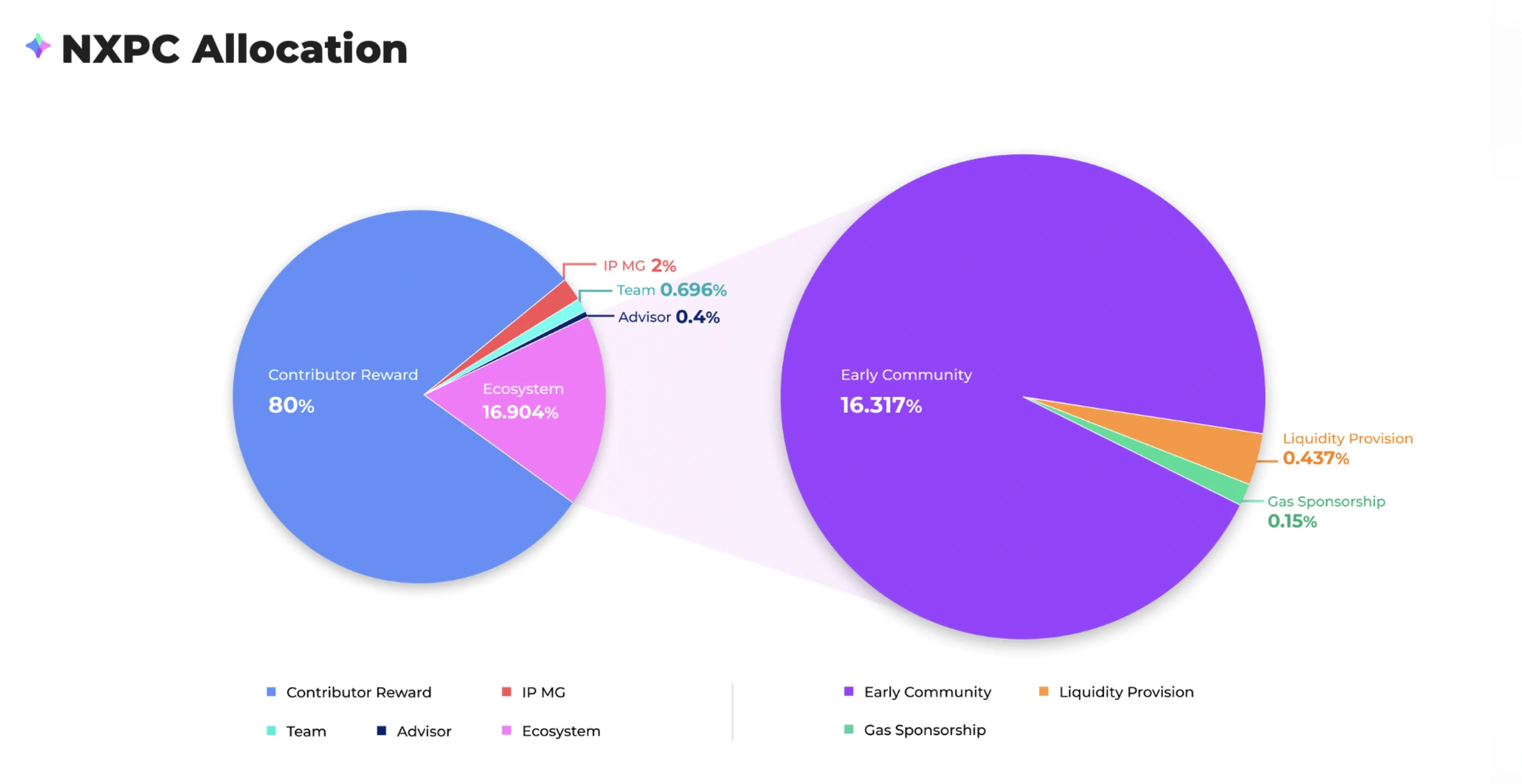 根据官方信息,其代币 NXPC 总供应量为 10 亿枚,具体分配比例如下: