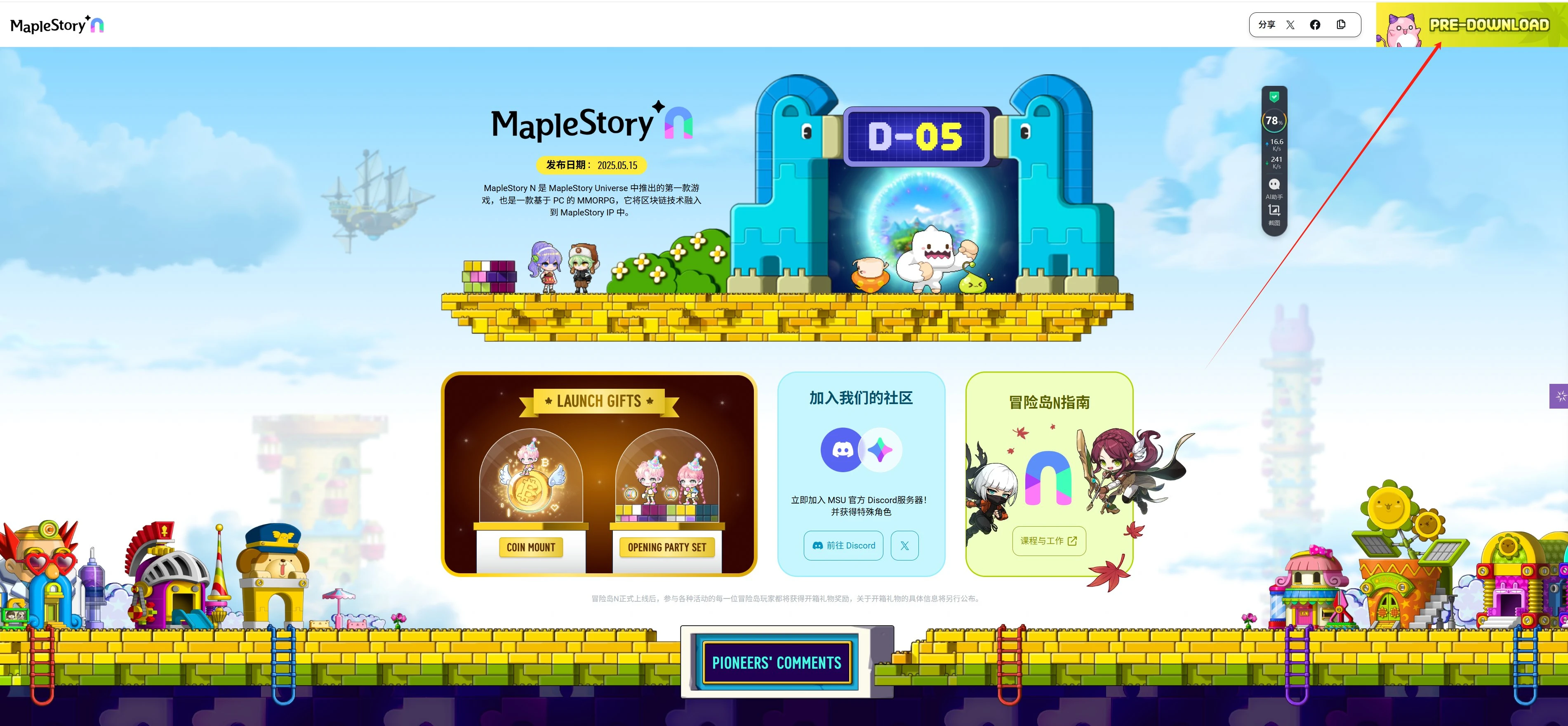 STEP 1. 游戏预下载:进行官网进行游戏预下载(链接: https://msu.io/maplestoryn/launch-countdown ),目前暂不支持苹果电脑进行预下载。