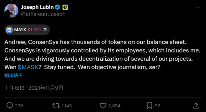 早在 2021 年,MetaMask 工程师 Erik Marks 便提出了代币发行的想法,而 ConsenSys CEO Joseph Lubin 在那年也发推文暗示代币引发市场关注。但现在,市场更加关注 ConsenSys 旗下 Layer 2 产品 Linea 的 TGE 进程。在 3 月 8 日,Linea 宣布不会在 2025 年一季度发币,引发社区对 TGE 进度的质疑。在这样的舆论环境下,ConsenSys 是否又将另辟蹊径,为广大钱包用户来个出其不意?