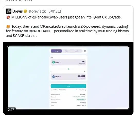 而且如果后面能和 Pancake 强绑, 推出各种各样的钩子功能,没准以后 Pancake 作为一个 DEX,能比币安的主站的交易功能还多。而推各种钩子的 Brevis 成为 Pancake Infinity 时代的一号功臣。