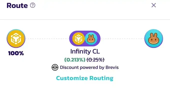 自从 Pancake 也推出 Infinity(也就是 V4 ) 之后,BSC 链的钩子也开始发展了。比如 Brevis 这个钩子居然在链上做出了 VIP 账户的效果:长期拿 $CAKE 的人,交易 CAKE-BNB 这个带这个钩子的池子时,手续费就比别人低;再比如说成交量的比较高的链上大户,手续费也能别被人更低。