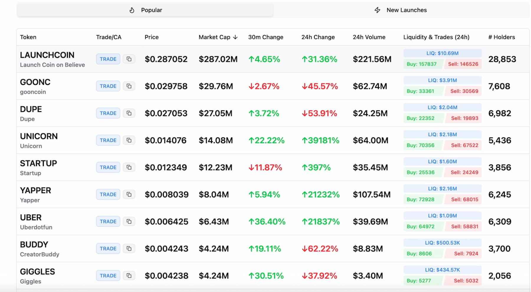 Believe Screener 由@nanowisp 构建,支持按市值、成交量、涨幅排序 Believe 生态代币,并且实时呈现通过 Believe 新启动的代币,并且可导航至相关推文。Believe Screener 网站右下角设置新代币推送模块,确保用户捕捉即时新代币动态。