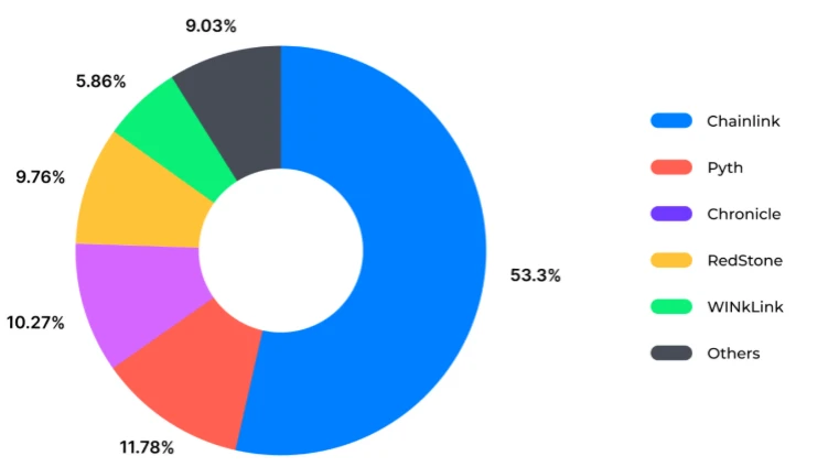 尽管预言机被视作区块链的“情报中枢”,但现实中这一中枢的掌控者,却长期处于某种“准中心化”的垄断状态。以 Chainlink 为代表的传统预言机巨头,既是行业基础设施的缔造者,也是秩序规则的最大获益者。然而,随着模块化叙事、DePIN 范式、ZK 验证路径等新兴趋势的崛起,预言机的市场格局正在经历一场显性的权力重构。这个领域的变化不是简单的产品竞争,而是对“谁来定义链上现实”的哲学对抗。