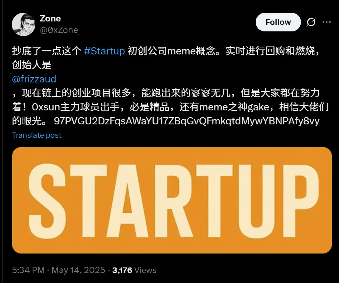STARTUP 在 X 上频繁喊着「实时回购+销毁」,不管你信不信,反正市场信了。叙事号称「区块链上的 Y Combinator」,每个买家都是天使投资人,TAM 无限——听起来像是 Web2 创投的 PPT。
