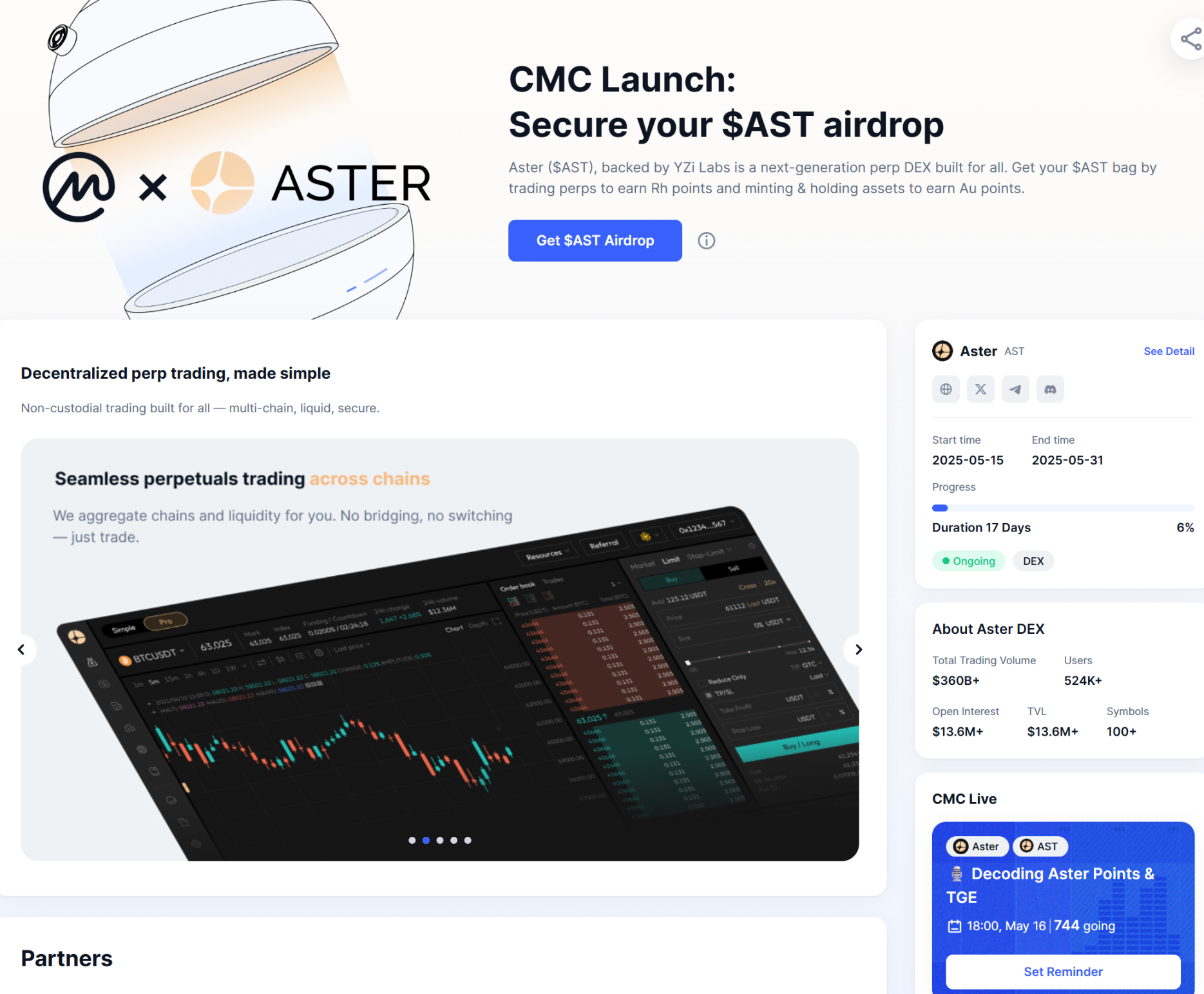 5 月 15 日,加密货币数据平台 CoinMarketCap(CMC)上线其全新功能——CMC Launch。其首发项目为 Aster(AST)。作为数据平台,这是近期以来的一大动作,那么其背后的意义和思考究竟是什么?Aster 又有哪些亮点成为 Launch 第一个上线项目?